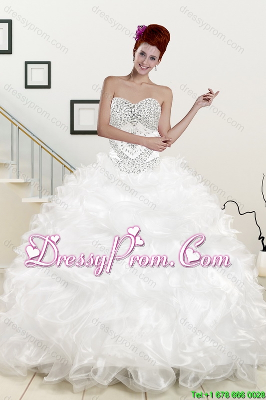 White Sweetheart Quinceanera Dress and Beautiful Short Dama Dresses and 2015 White Little Girl Dress