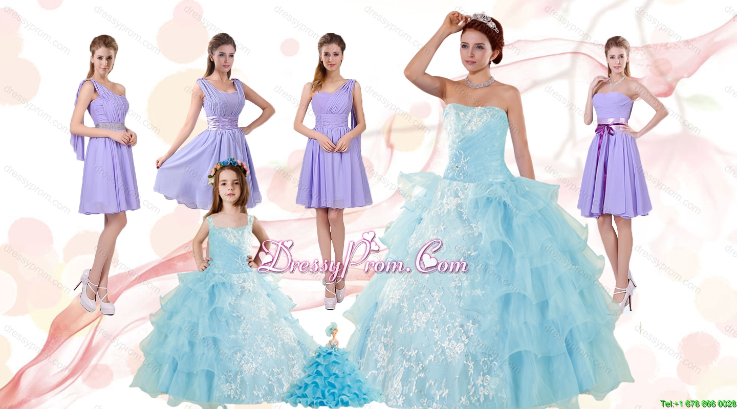 Strapless Ruffles Elegant Quinceanera Dress and Lavender Mini Length Prom Dress and Appliques and Ruffles Baby Bule Little Girl Pageant Dress
