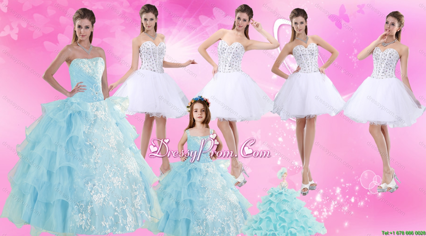 Strapless Ruffles Elegant Quinceanera Dress and Pretty Sweetheart Beading Prom Dress and Ruffles Baby Bule Little Girl Pageant Dress