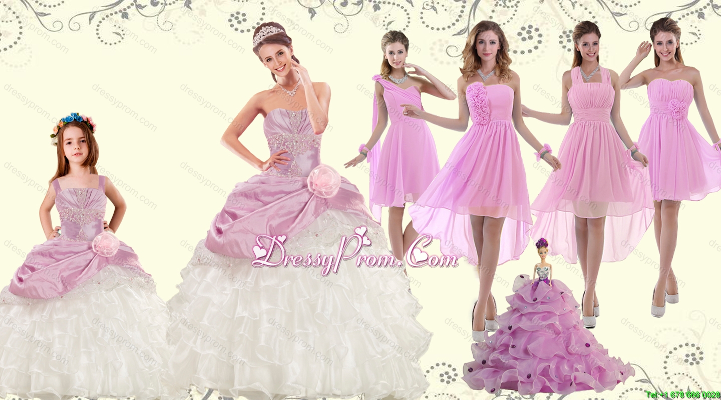 Elegant Ruffles Multi Color Quinceanera Dress and Pink Short Dama Dresses and 2015 Straps Ruffles Little Girl Dress