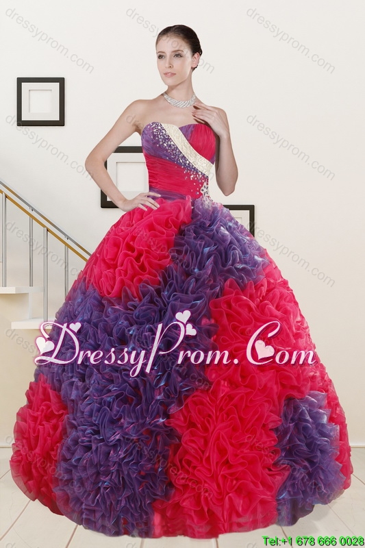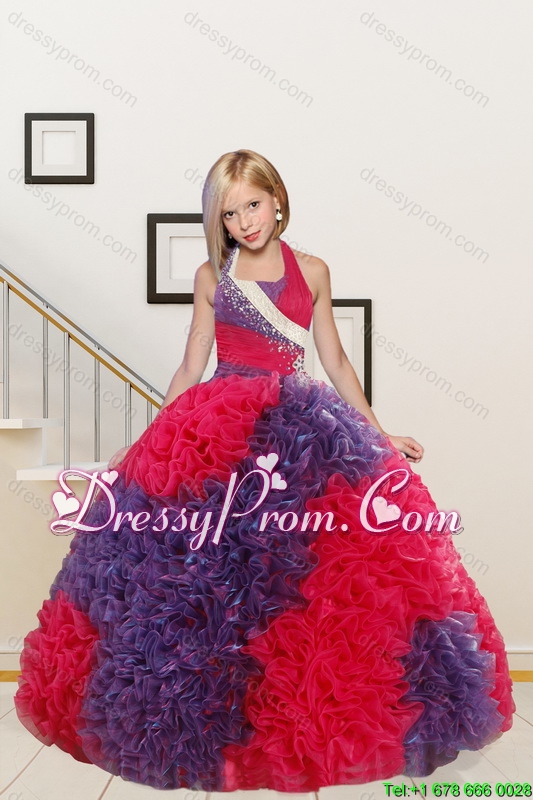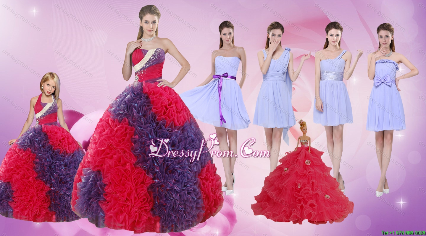 Elegant Multi Color Floor Length Quinceanera Dress and Ruching Short Dama Dresses and Multi Color Halter Top Little Girl Dre