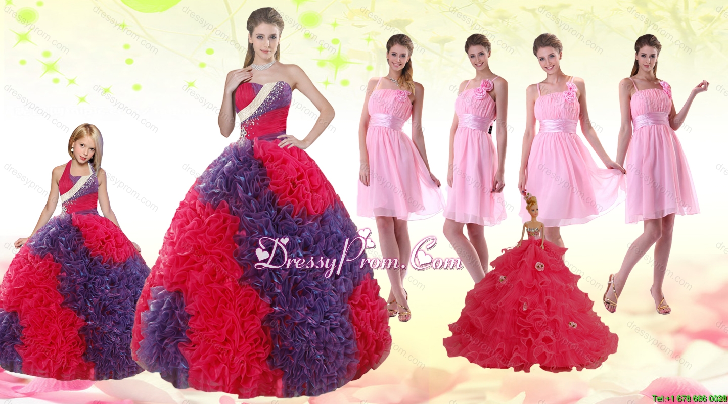 Multi Color Ball Gown Ruffles Quinceanera Dress and Ruching Baby Pink Dama Dresses and Halter Top Multi Color Little Girl Dress