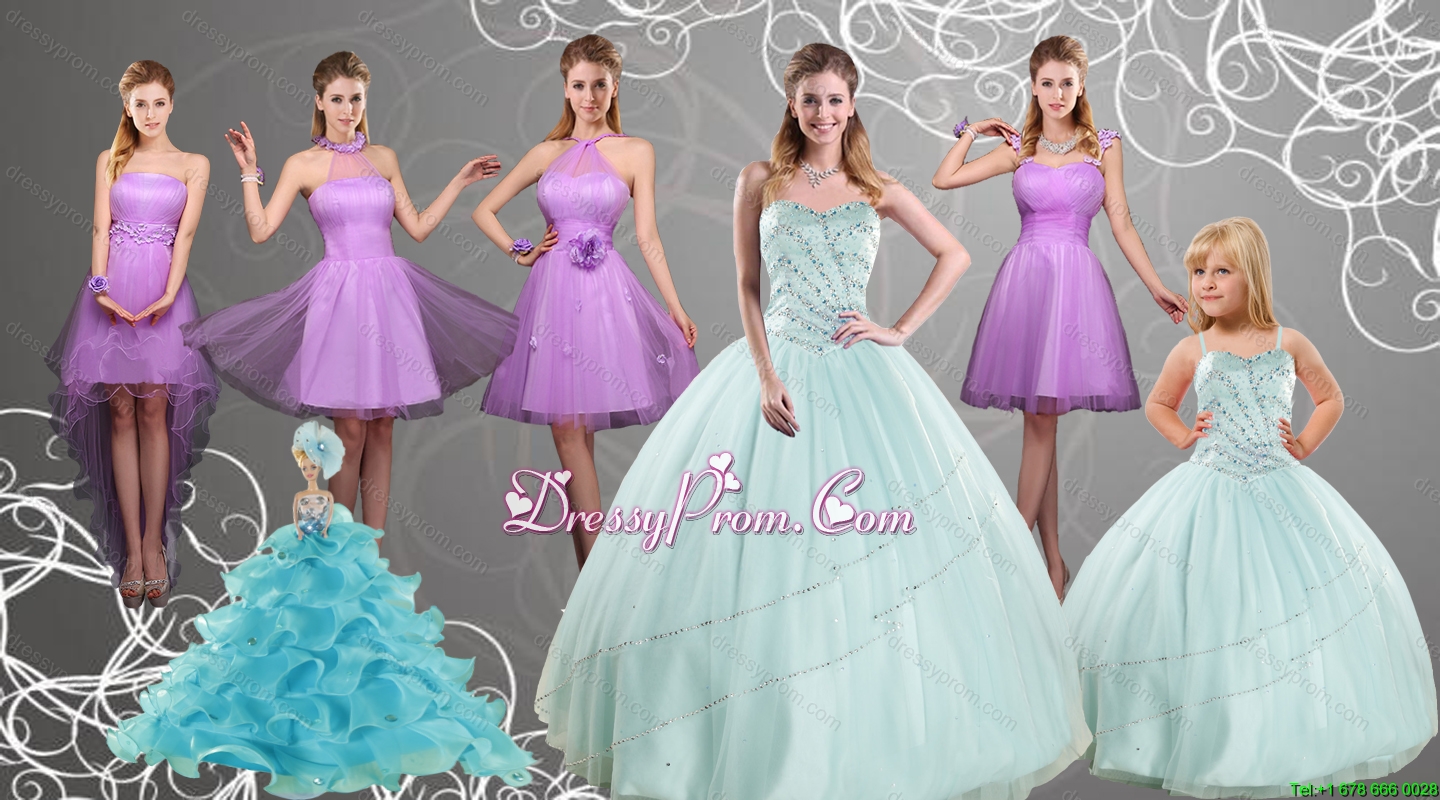 Cheap Sweetheart Beading Quinceanera Dress and Lilac Short Prom Dresses and Apple Green Spaghetti Straps Beading Pageant Dresses for Little Girl