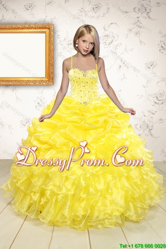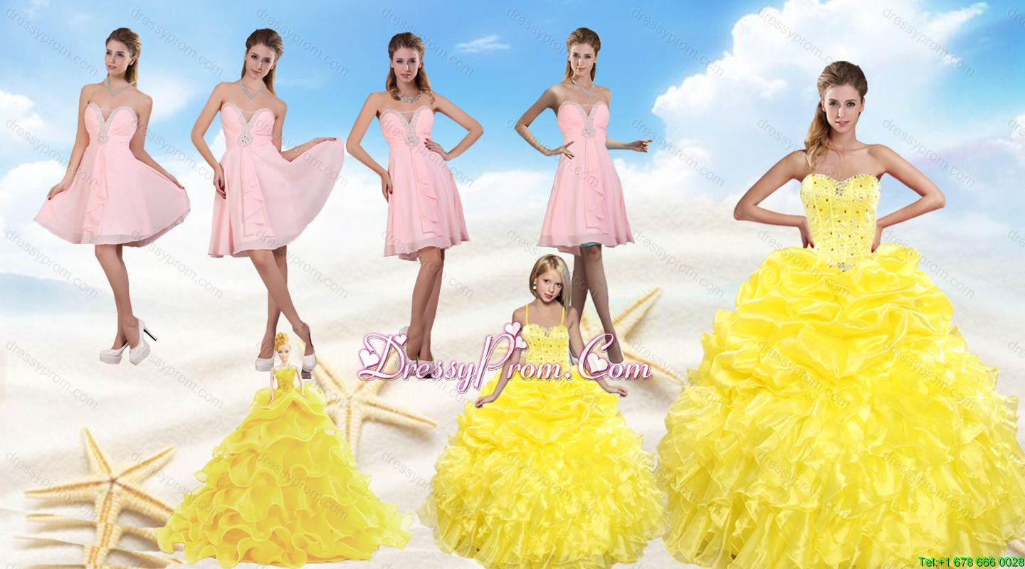 Yellow Sweetheart Beading Quinceanera Dress and Light Pink Short Prom Dresses and Ruffles and Beading Little Girl Dress