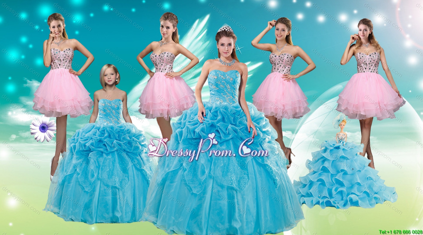 Baby Blue Ball Gown Pick Ups Quinceanera Dress and Beading Rose Pink Short Dama Dresses and Pick Ups Little Girl Dress