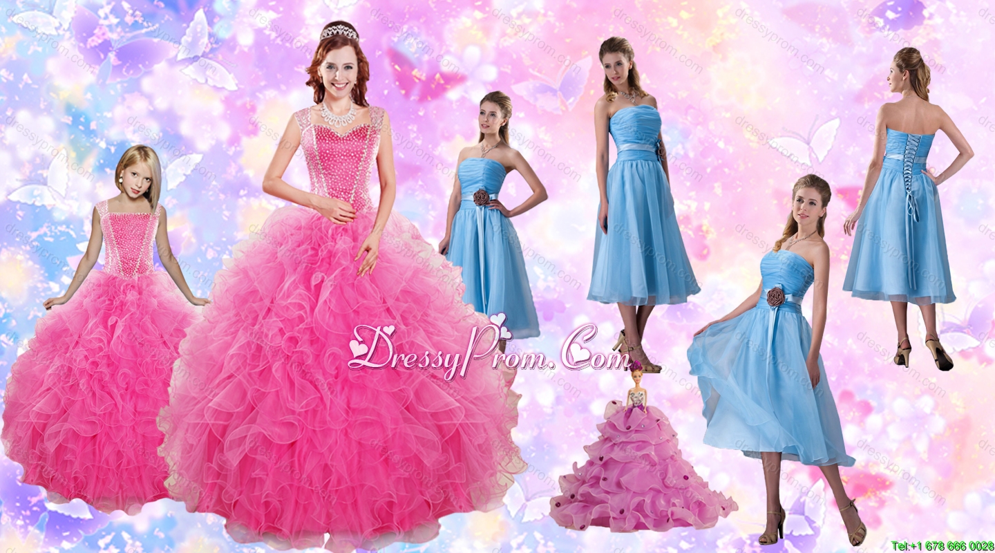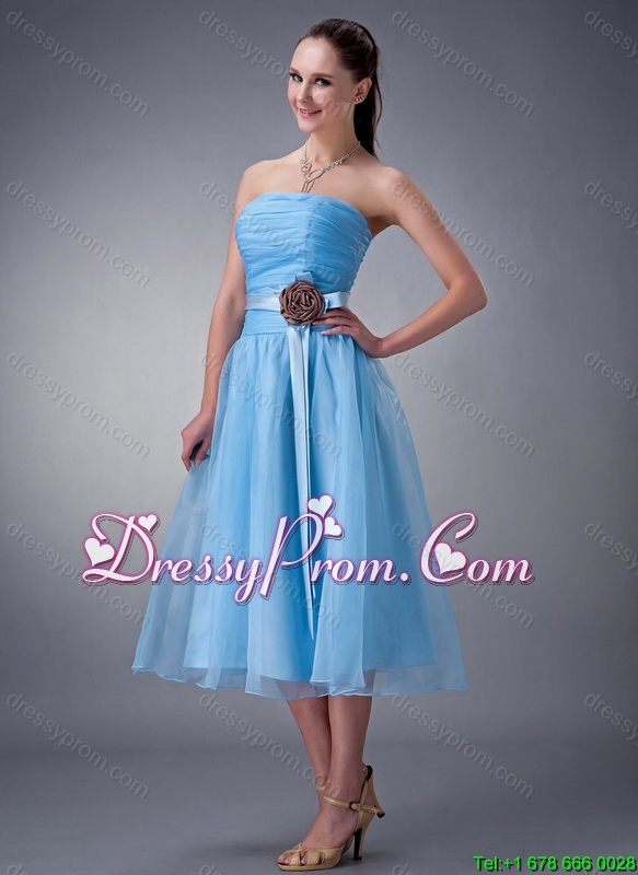 Beading and Ruffles Quinceanera Dress and Strapless Knee Length Baby Blue Dama Dresses and Rufles Cute Flower Girl Dress