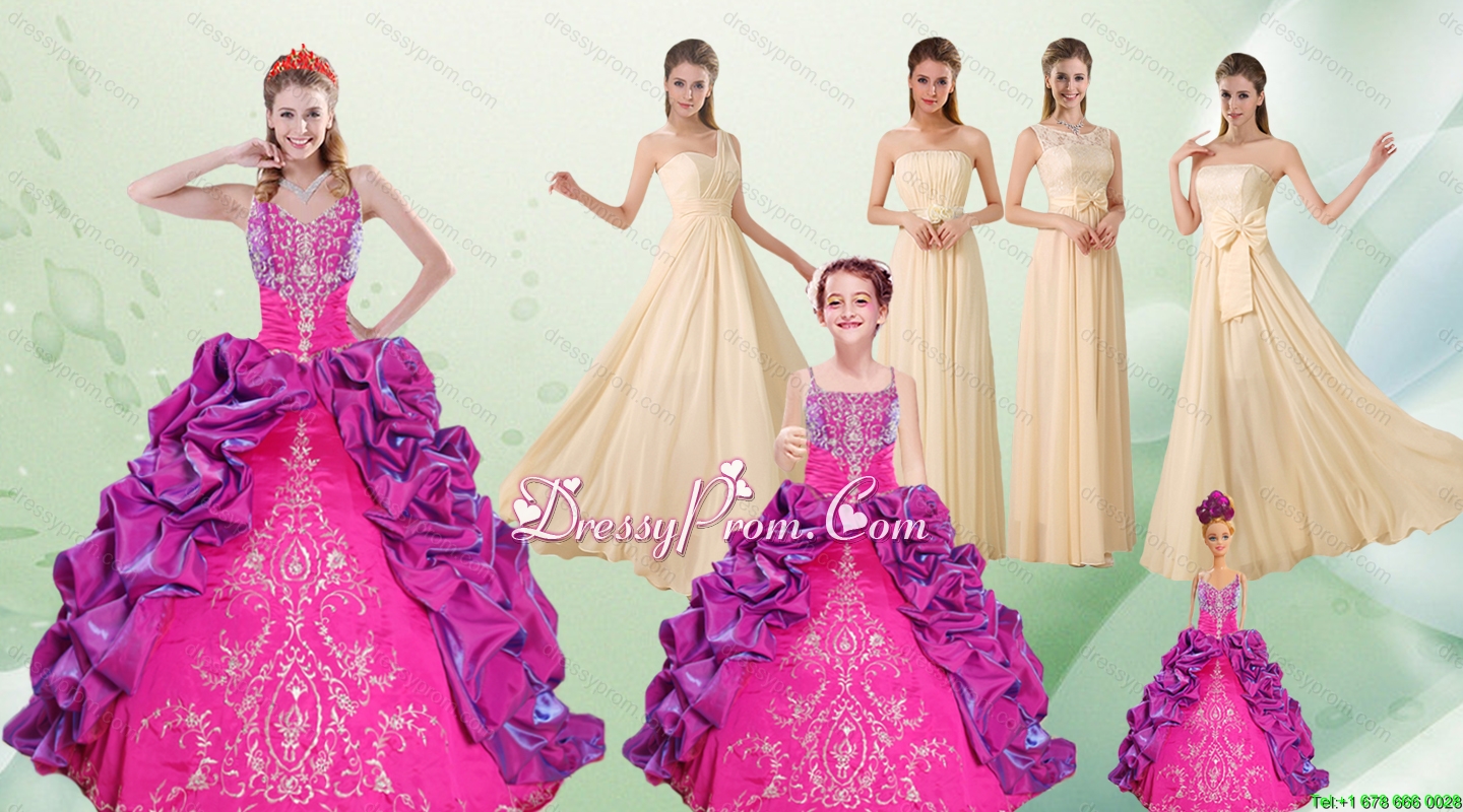 Spaghetti Straps Multi Color Quinceanera Dress and Long Ruching Dama Dresses and Ruffels and Embroidery Little Girl Dress