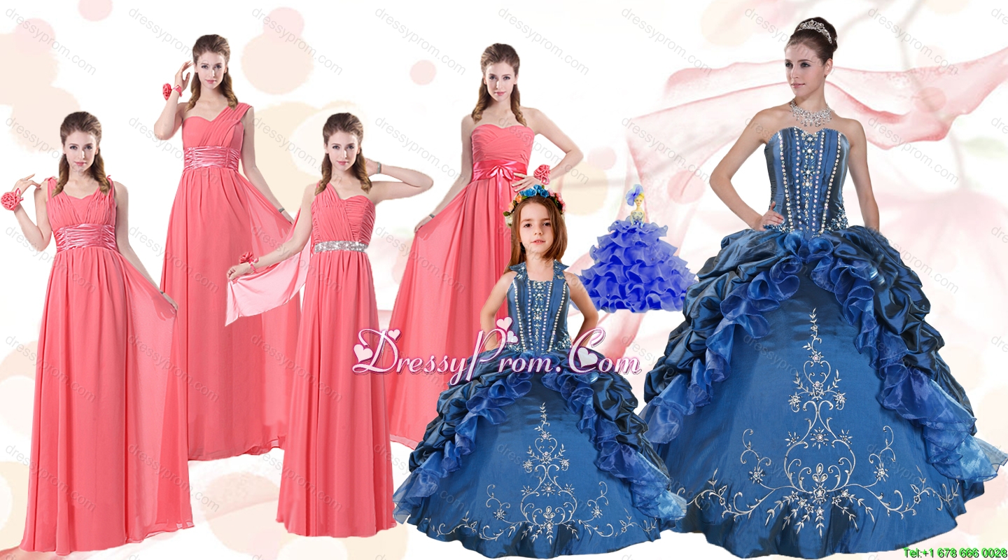 Elegant Ruffles and Embroidery Quinceanera Gown and Watermelon Long Prom Dresses and Embroidery Little Girl Dress