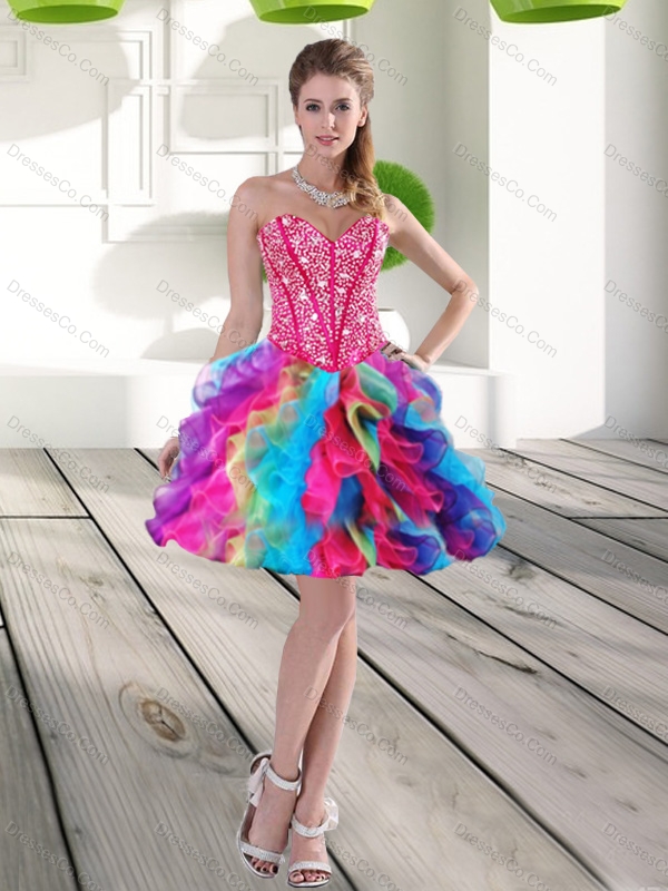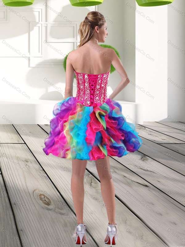 Neckline : SweetheartShown Color : Multi-colorSilhouette : Ball GownsSleeve Length : sleevelessHemline : knee lengthBack Detail : Lace upFabric : OrganzaEmbellishment : Beading,RufflesOccasion : Prom,Party,Cocktail,HomecomingSeason : Spring,Summer,Fall