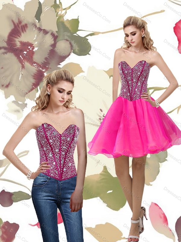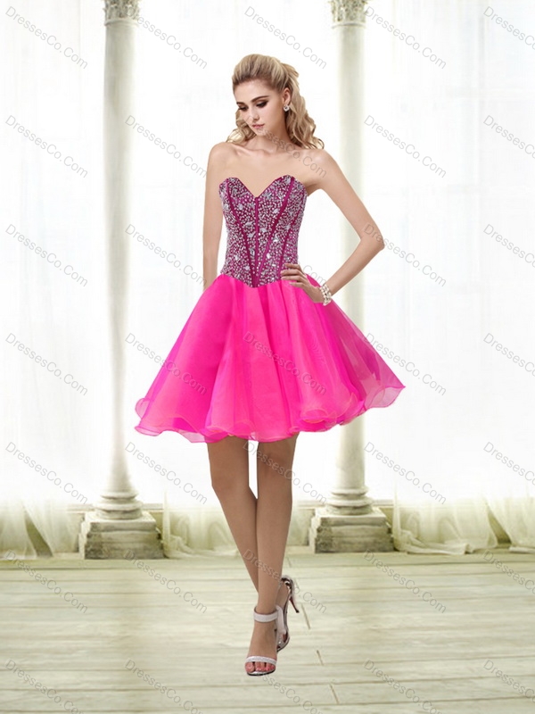 Neckline : SweetheartShown Color : Hot PinkSilhouette : A-lineSleeve Length : sleevelessHemline : mini lengthBack Detail : Lace upFabric : OrganzaEmbellishment : BeadingOccasion : Prom,Party,Cocktail,HomecomingSeason : Spring,Summer,Fall
