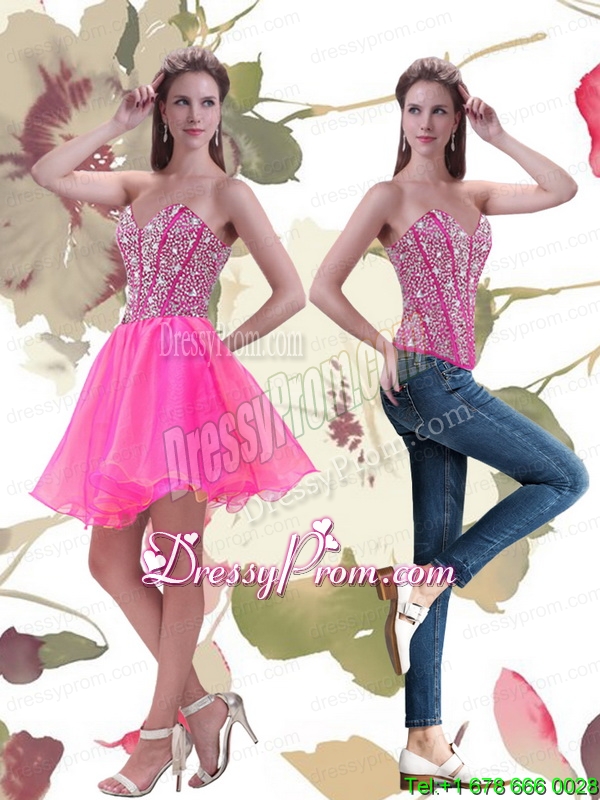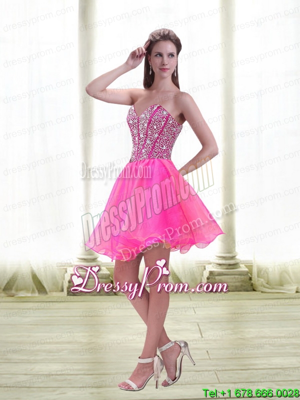 Neckline : SweetheartShown Color : Hot PinkSilhouette : A-lineSleeve Length : sleevelessHemline : mini lengthBack Detail : Lace upFabric : OrganzaEmbellishment : BeadingOccasion : Prom,Party,Cocktail,HomecomingSeason : Spring,Summer,Fall