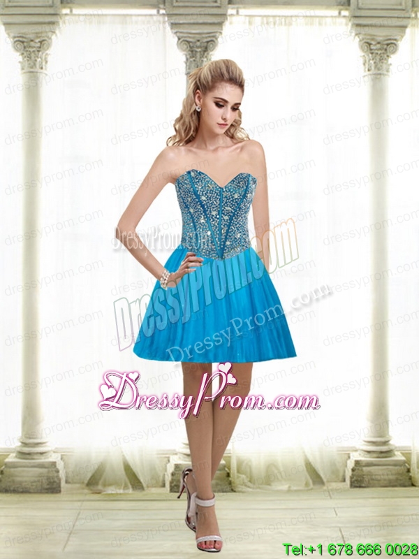 Neckline : SweetheartShown Color : Teal Silhouette : A-lineSleeve Length : sleevelessHemline : knee lengthBack Detail : Lace upFabric : TulleEmbellishment : BeadingOccasion : Prom,Party,Cocktail,HomecomingSeason : Spring,Summer,Fall