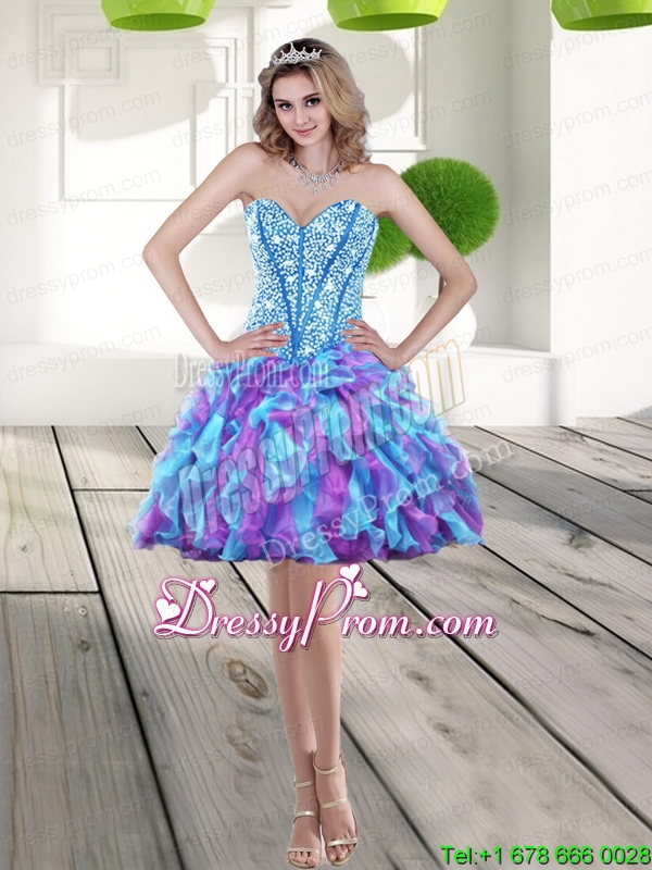 Neckline : SweetheartShown Color : Multi-colorSilhouette : A-lineSleeve Length : sleevelessHemline : knee lengthBack Detail : Lace upFabric : OrganzaEmbellishment : Beading,RufflesOccasion : Prom,Party,Cocktail,HomecomingSeason : Spring,Summer,Fall