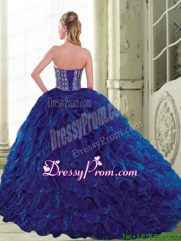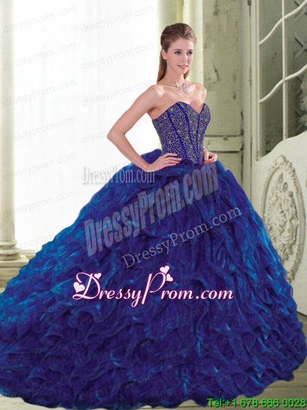 Elegant 2015 Sweetheart Beading and Ruffles Navy Blue Quinceanera Dresses