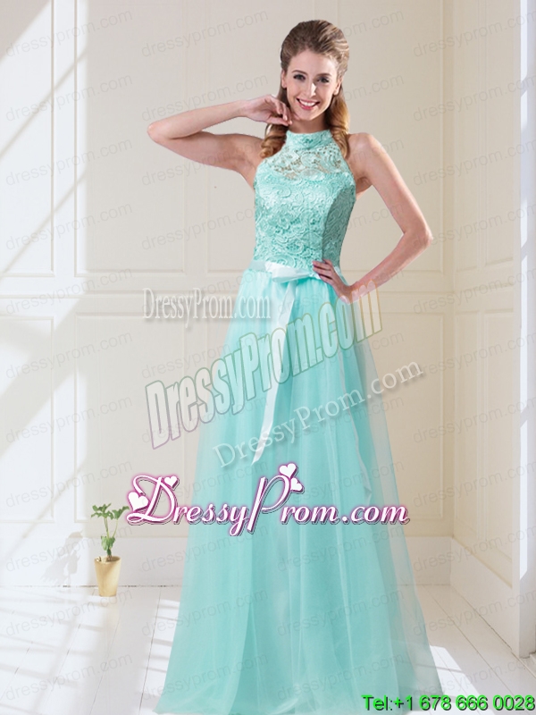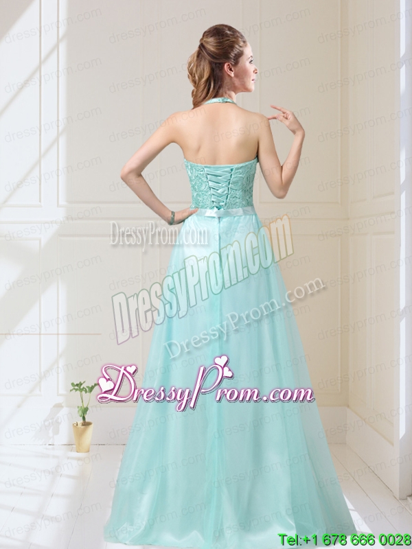 2015 Fall Elegant Empire Halter Top Laced Mint Dama Dresses with Sash