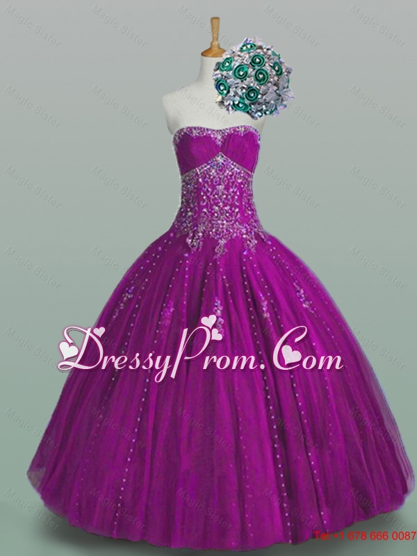 2015 Elegant Strapless Beaded Quinceanera Dresses with Appliques
