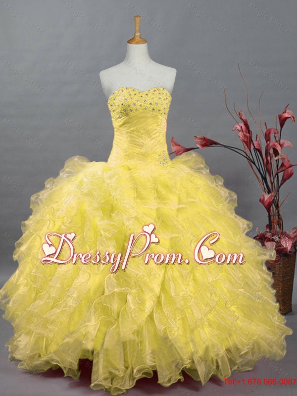 Neckline : SweetheartShown Color : YellowSilhouette : Ball GownsSleeve Length : sleevelessHemline : floor lengthBack Detail : Lace upFabric : OrganzaEmbellishment : BeadingOccasion : Military Ball,Sweet 16,QuinceaneraSeason : Spring,Summer,Fall,Winter