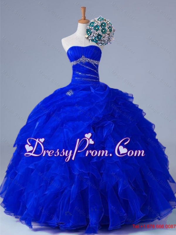 2015 Artistic Strapless Beaded and Ruffles Quinceanera Gowns in Organza
