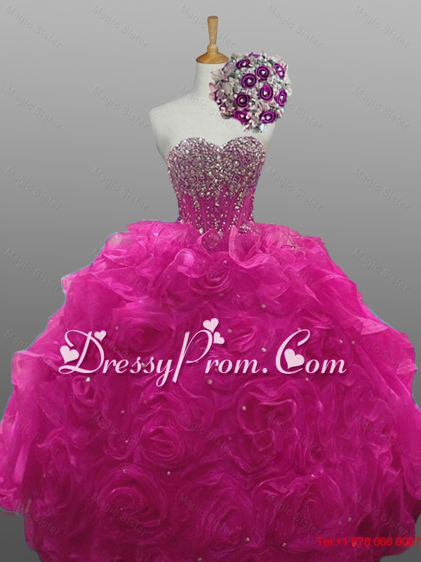 2015 Gorgeous Quinceanera Dresses with Beading and Rolling Flowers