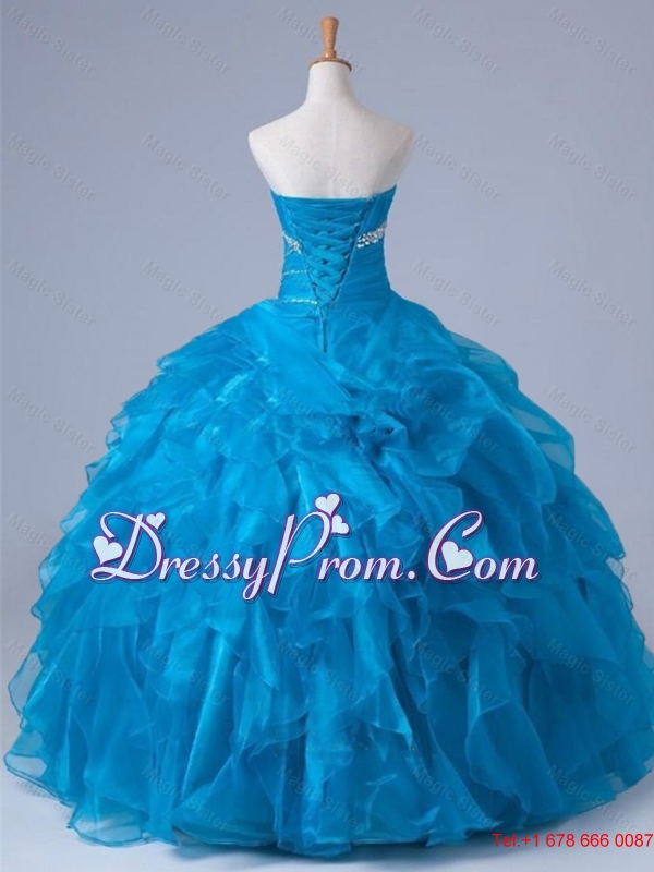Neckline : SweetheartShown Color : Teal Silhouette : Ball GownsSleeve Length : sleevelessHemline : floor lengthBack Detail : Lace upFabric : OrganzaEmbellishment : BeadingOccasion : Military Ball,Sweet 16,QuinceaneraSeason : Spring,Summer,Fall,Winter