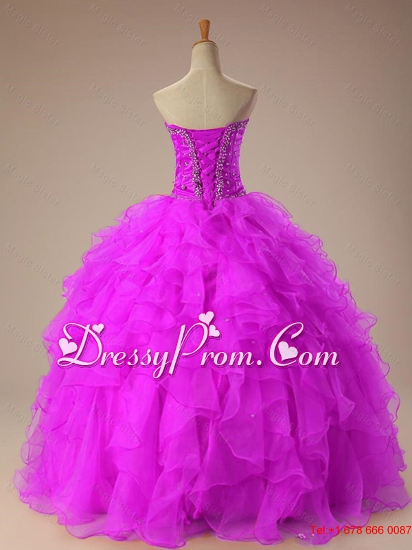 Neckline : SweetheartShown Color : FuchsiaSilhouette : Ball GownsSleeve Length : sleevelessHemline : floor lengthBack Detail : Lace upFabric : OrganzaEmbellishment : BeadingOccasion : Military Ball,Sweet 16,QuinceaneraSeason : Spring,Summer,Fall,Winter