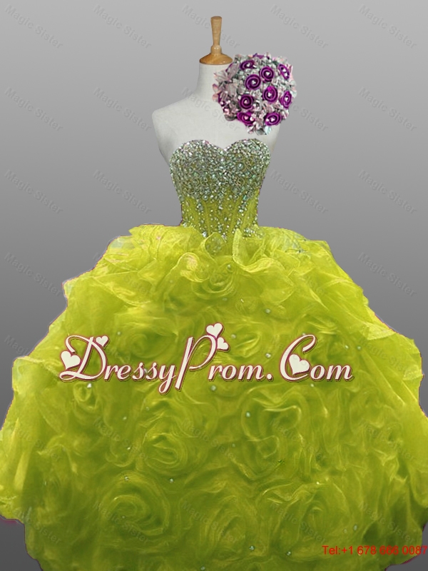2015 Popular Beaded Quinceanera Dresses with Rolling Flowers