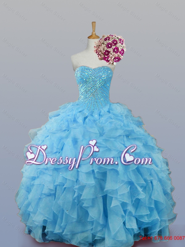 Neckline : SweetheartShown Color : Baby BlueSilhouette : Ball GownsSleeve Length : sleevelessHemline : floor lengthBack Detail : Lace upFabric : OrganzaEmbellishment : BeadingOccasion : Military Ball,Sweet 16,QuinceaneraSeason : Spring,Summer,Fall,Winter