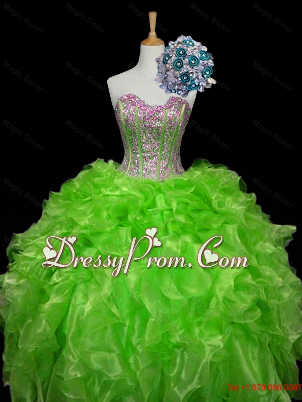 Luxurious Ball Gown Apple Green Quinceanera Dresses with Sequins and Ruffles