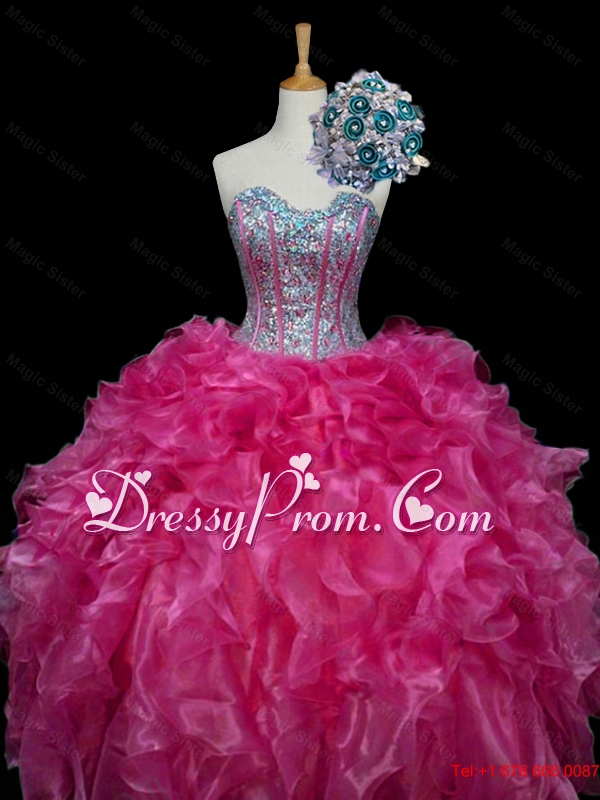 Perfect Sweetheart Hot Pink Quinceanera Dresses with Sequins and Ruffles