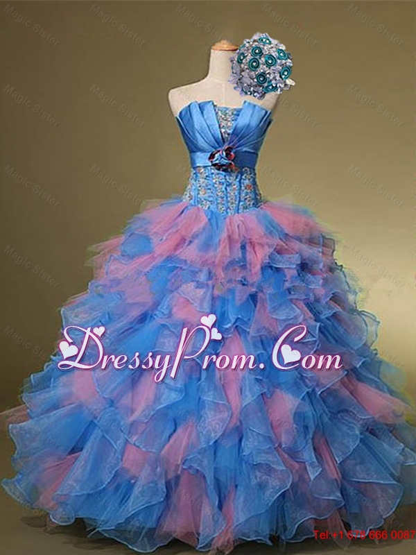 2015 Beautiful Strapless Quinceanera Dresses with Hand Made Flowers and Beading