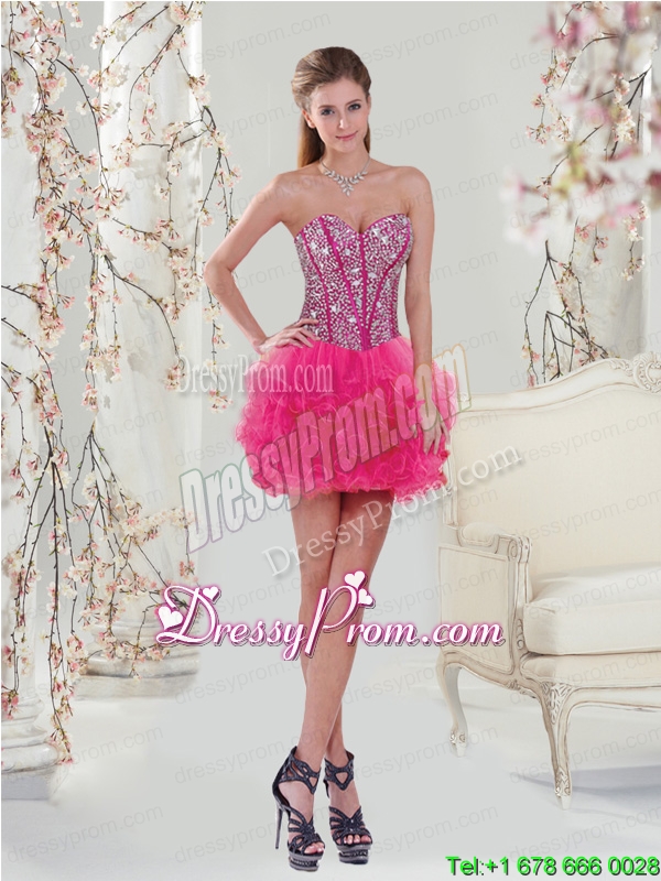 Detachable Sweetheart Beaded and Ruffles Wonderful Quinceanera Dresses in Hot Pink