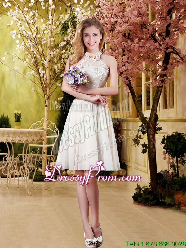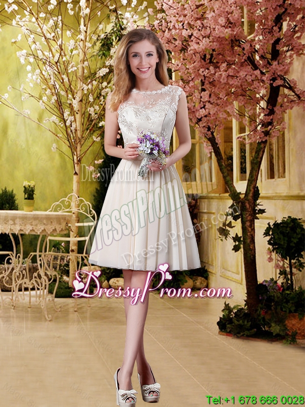 Neckline : BateauShown Color : ChampagneSilhouette : A-lineSleeve Length : sleevelessHemline : mini lengthBack Detail : ZipperFabric : ChiffonEmbellishment : LaceOccasion : Prom,Party,Cocktail,Homecoming,GraduationSeason : Spring,Summer,Fall