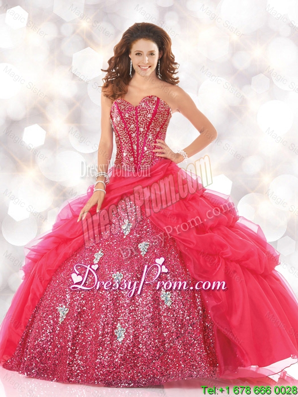 Neckline : SweetheartShown Color : RedSilhouette : Ball GownsSleeve Length : sleevelessHemline : floor lengthBack Detail : Lace upFabric : Tulle,SequinedEmbellishment : Beading,SequinsOccasion : Graduation,Military Ball,Sweet 16,QuinceaneraSeason : Spring,Summer,Fall,Winter