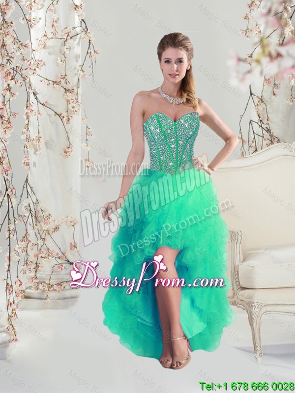 Neckline : SweetheartShown Color : TurquoiseSleeve Length : sleevelessHemline : floor lengthBack Detail : Lace upFabric : OrganzaEmbellishment : Beading,RufflesOccasion : Graduation,Military Ball,Sweet 16,QuinceaneraSeason : Spring,Summer,Fall,Winter