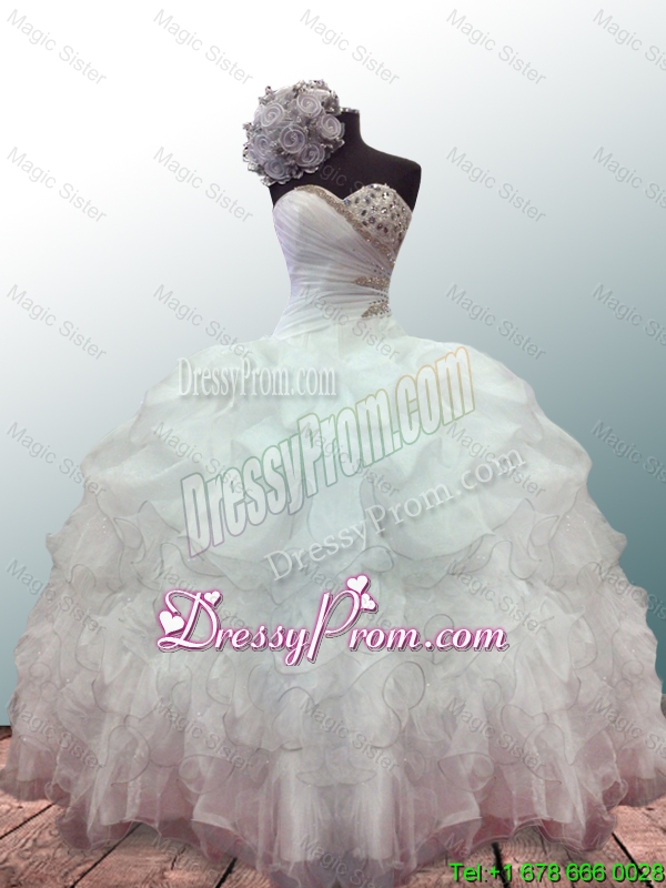 New Style Sweetheart Ball Gown White Quinceanera Dresses with Beading and Ruffles