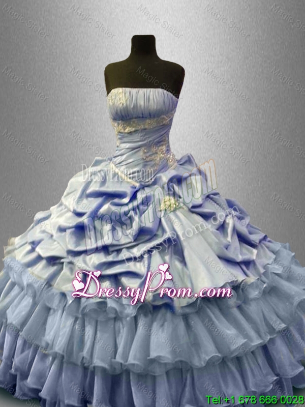 Neckline : StraplessShown Color : LavenderSilhouette : Ball GownsSleeve Length : sleevelessHemline : floor lengthBack Detail : Lace upFabric : Organza,TaffetaEmbellishment : Beading,Ruffled Layers,Pick Ups
