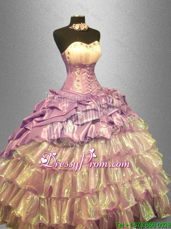 2015 Flirting Sweetheart Quinceanera Dresses with Beading and Ruffled Layers