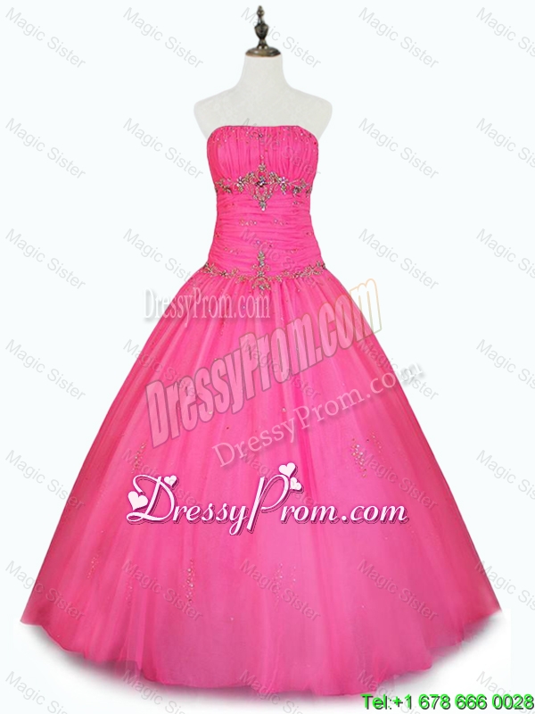 Neckline : StraplessShown Color : Hot PinkSilhouette : Ball GownsSleeve Length : sleevelessHemline : floor lengthBack Detail : Lace upFabric : TulleEmbellishment : BeadingOccasion : Military Ball,Sweet 16,QuinceaneraSeason : Spring,Summer,Fall,Winter
