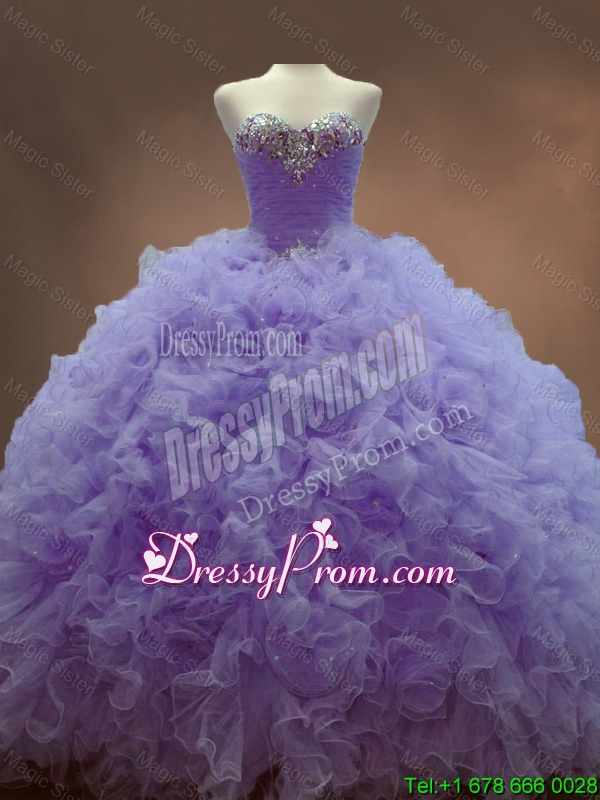 Neckline : SweetheartShown Color : LavenderSilhouette : Ball GownsSleeve Length : sleevelessHemline : floor lengthBack Detail : Lace upFabric : TulleEmbellishment : Beading,RufflesOccasion : Military Ball,Sweet 16,QuinceaneraSeason : Spring,Summer,Fall,Winter