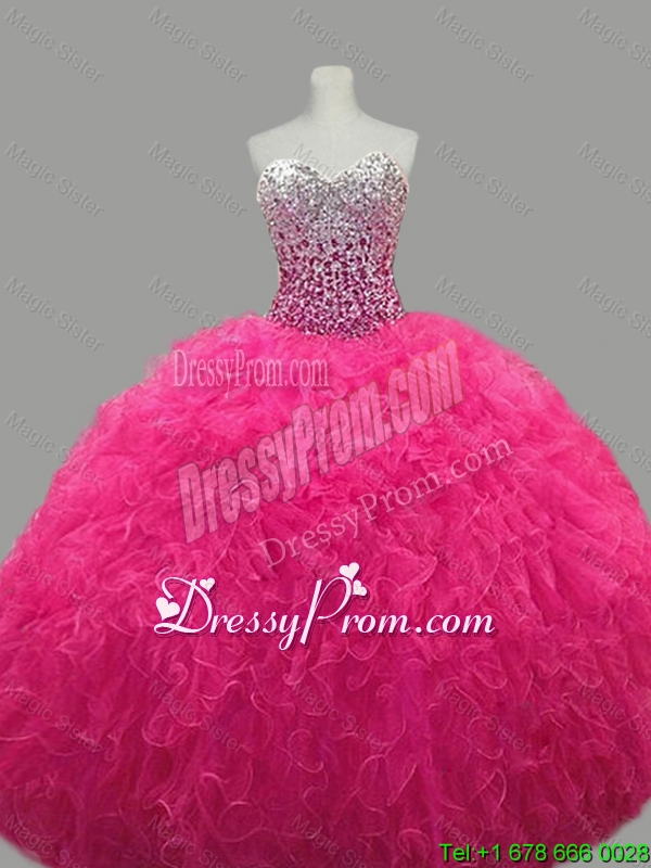 Puffy Sweetheart Hot Pink Quinceanera Dresses with Beading and Ruffles