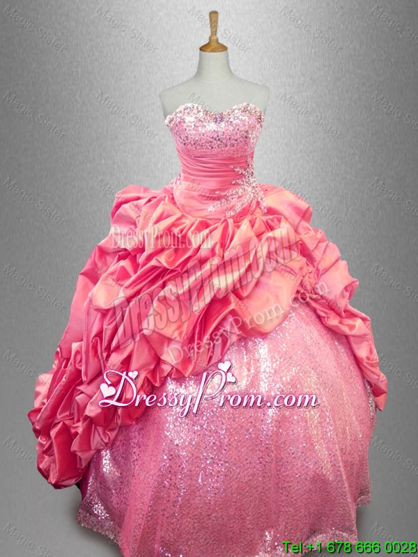 Neckline : StraplessShown Color : Coral RedSilhouette : Ball GownsSleeve Length : sleevelessHemline : floor lengthBack Detail : Lace upFabric : TaffetaEmbellishment : Beading,Sequins,Pick UpsOccasion : Military Ball,Sweet 16,QuinceaneraSeason : Spring,Summer,Fall,Winter