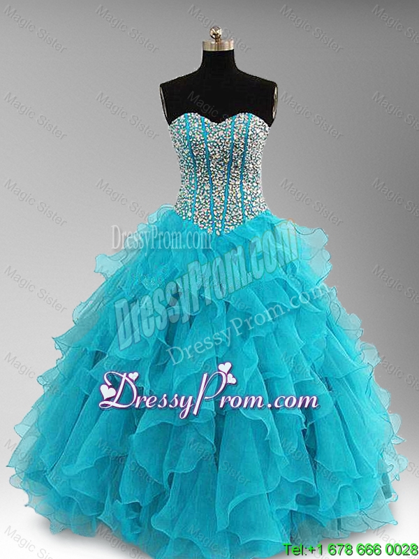 Elegant Beaded and Ruffles Quinceanera Dresses in Aqua Blue