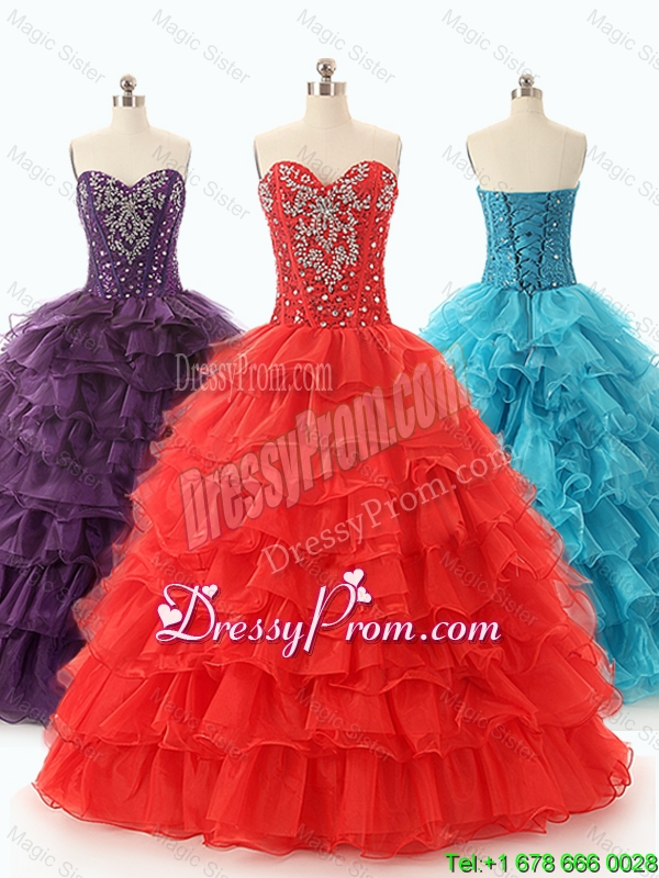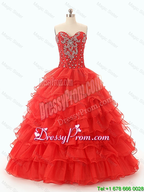 Neckline : SweetheartShown Color : RedSilhouette : Ball GownsSleeve Length : sleevelessHemline : floor lengthBack Detail : Lace upFabric : OrganzaEmbellishment : Beading,Ruffled LayersOccasion : Military Ball,Sweet 16,QuinceaneraSeason : Spring,Summer,Fall,Winter