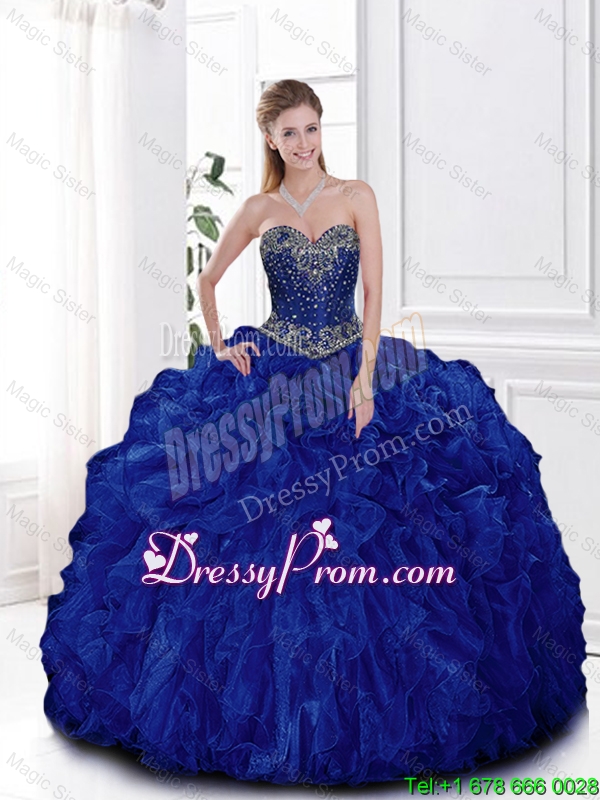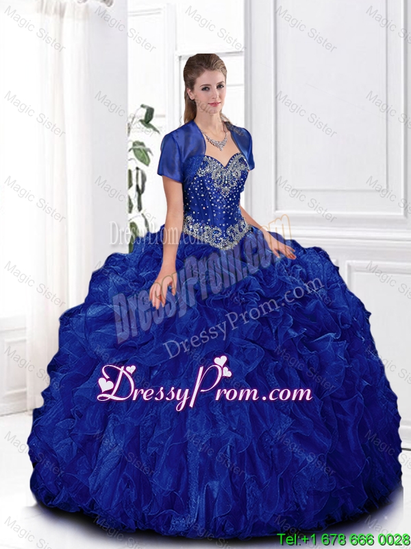 Elegant Beaded and Ruffles Quinceanera Gowns in Royal Blue