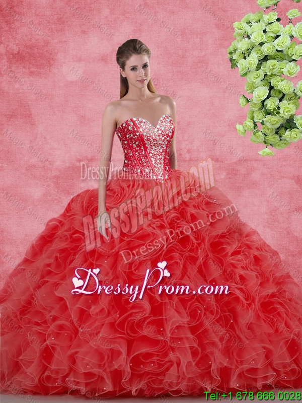 Discount Beaded Red Quinceanera Gowns for 2016 Spring