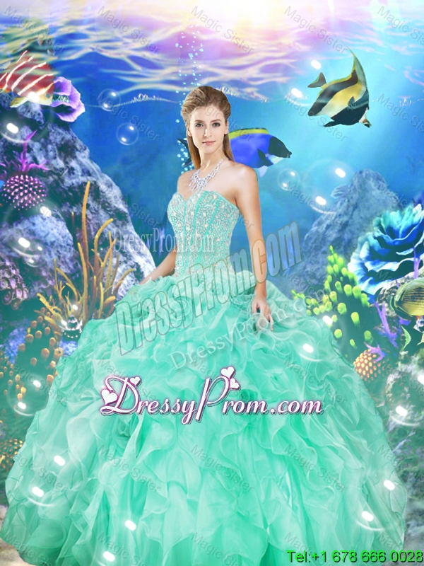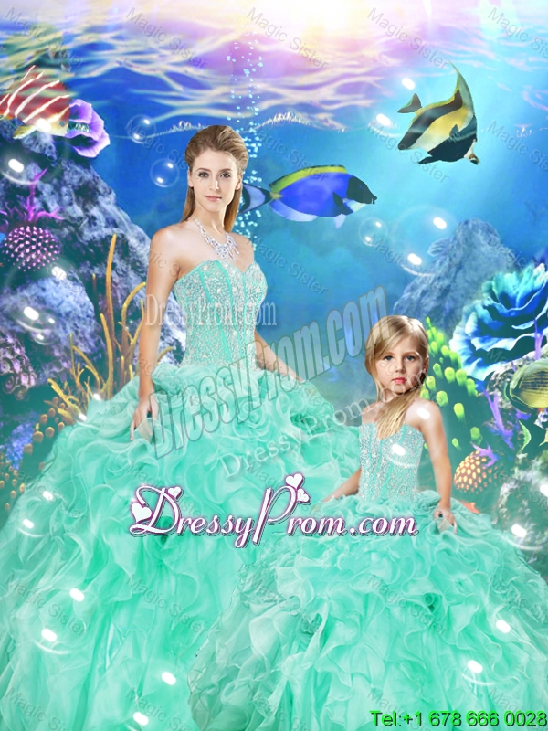 2016 Spring New Arrival Sweetheart Beaded and Ruffles Macthing Sister Dresses in Apple Green