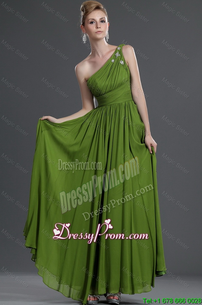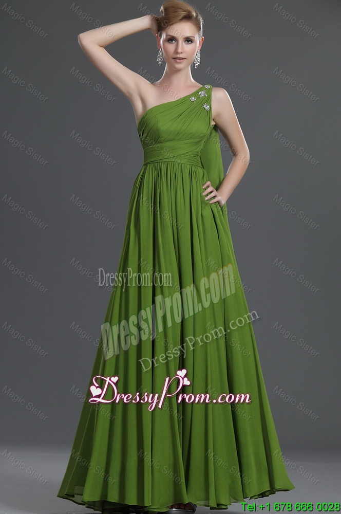 Neckline : One shoulderShown Color : GreenSilhouette : A-lineSleeve Length : sleevelessHemline : with trainBack Detail : ZipperFabric : ChiffonEmbellishment : BeadingOccasion : Prom,Formal Evening,Homecoming,Graduation,HolidaySeason : Spring,Summer,Fall,Winter