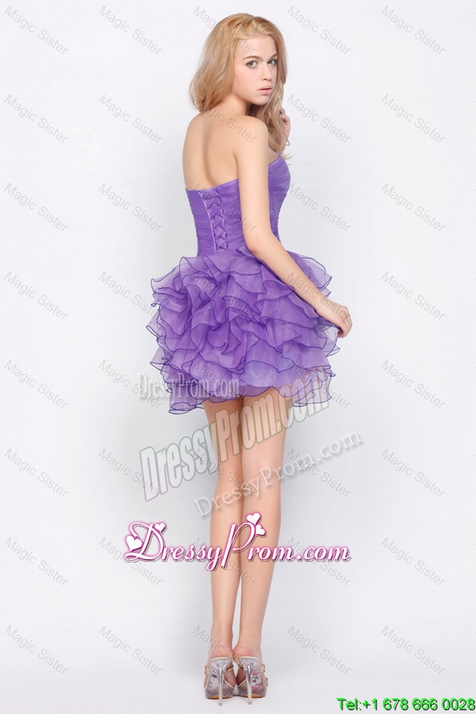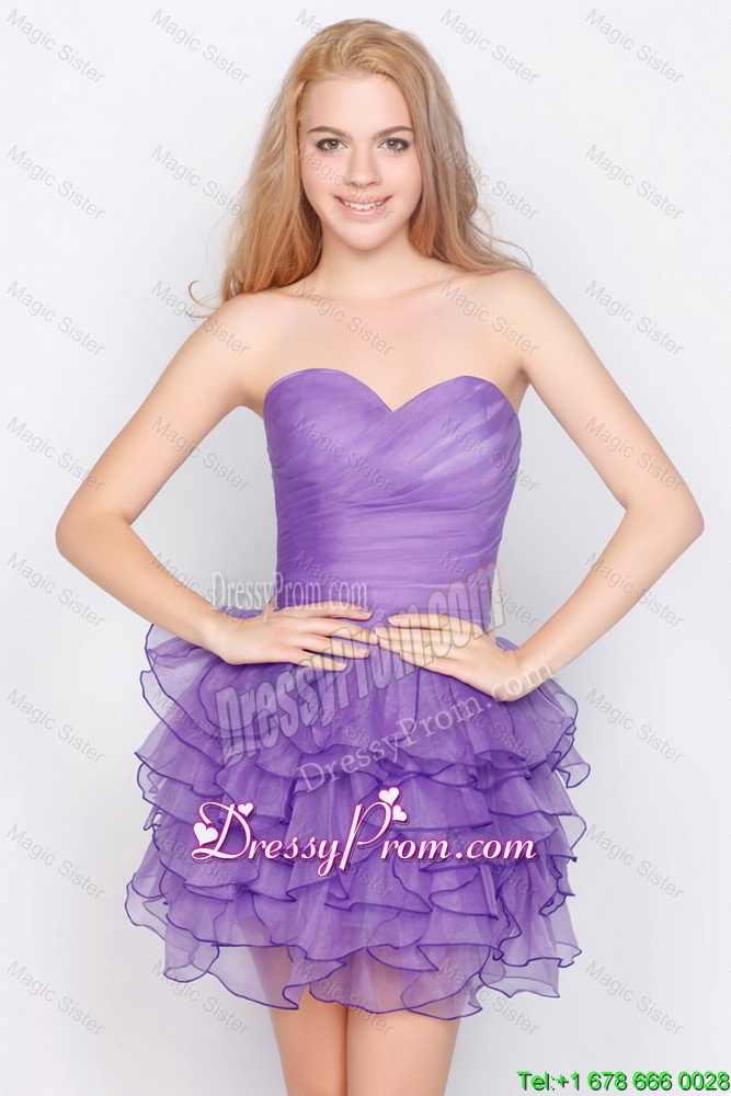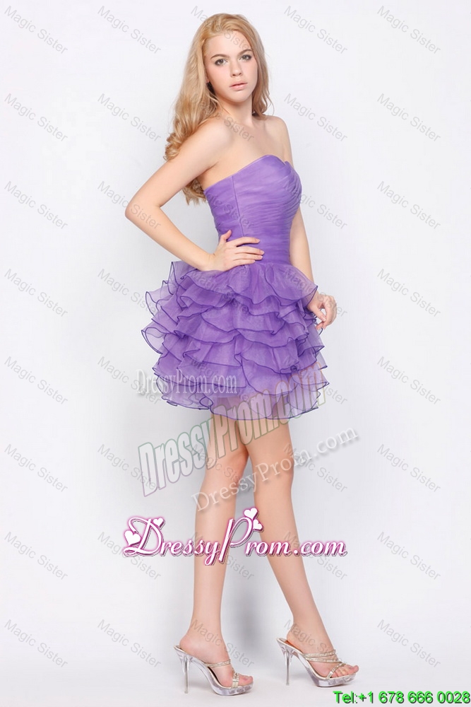 Neckline : SweetheartSilhouette : ShortSleeve Length : sleevelessHemline : mini lengthBack Detail : Lace upFabric : OrganzaEmbellishment : Ruffled LayersOccasion : Prom,Party,Cocktail,Homecoming,GraduationSeason : Spring,Summer,Fall