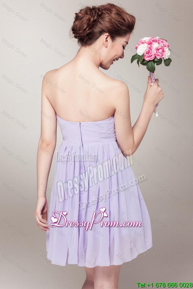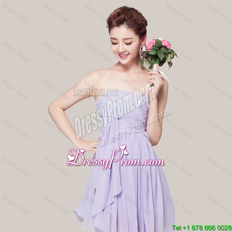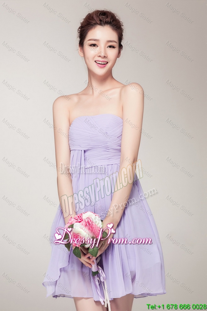 Neckline : StraplessShown Color : LavenderSilhouette : ShortSleeve Length : sleevelessHemline : mini lengthBack Detail : ZipperFabric : ChiffonEmbellishment : RuchingOccasion : Prom,Party,Cocktail,Homecoming,Graduation,HolidaySeason : Spring,Summer,Fall