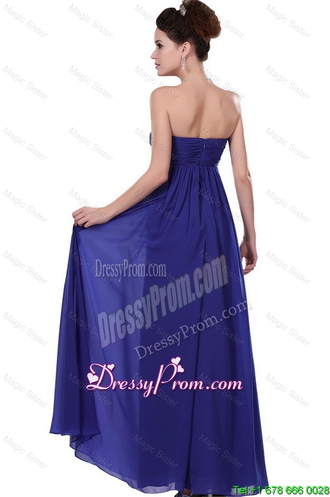 Neckline : StraplessShown Color : Royal BlueSilhouette : EmpireSleeve Length : sleevelessHemline : floor lengthBack Detail : ZipperFabric : ChiffonEmbellishment : Beading,RuchingOccasion : Prom,Formal Evening,PageantSeason : Spring,Summer,Fall,Winter